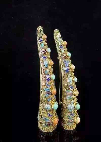 【指甲套】指甲套,护甲套、护指套。早就已出现。这一点被很多人忽视。只是到了清朝。后宫嫔妃用的就非常普遍了,样式也繁密了许多。