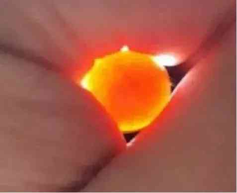 用石英石染色的南红打灯看内部是炸裂形成的网状结构,不是特别均匀且颗粒较粗。