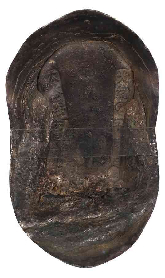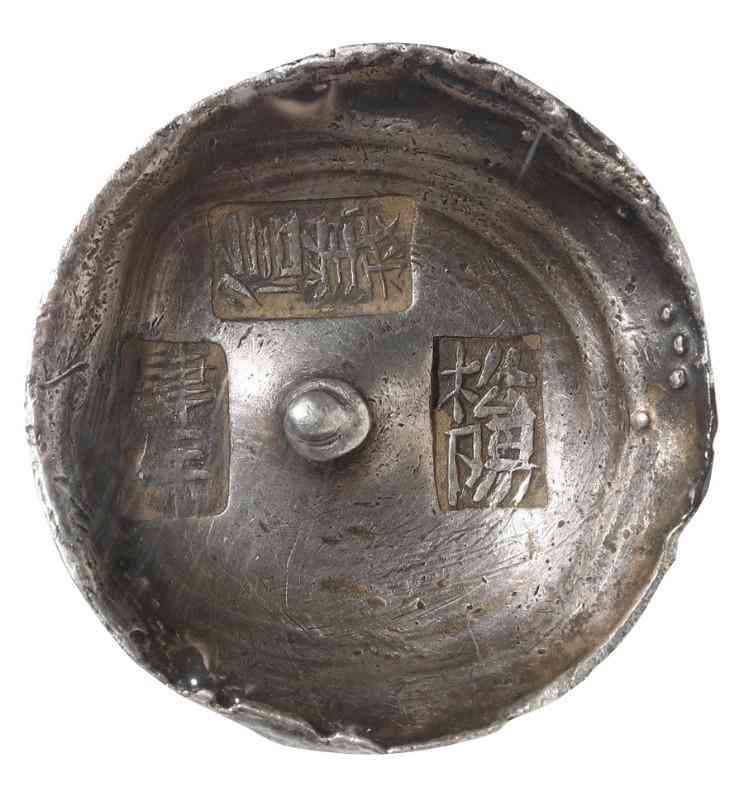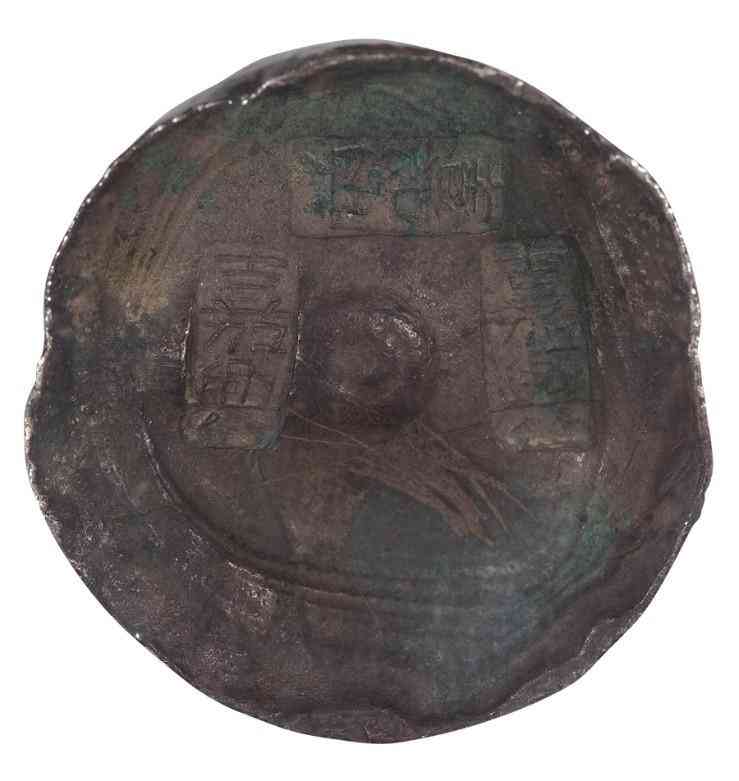 说明:原始状态,左排戳记间三点三圈的暗记和右排纪年款“镜宝”年“吉祥图案”月都很特别,少见。