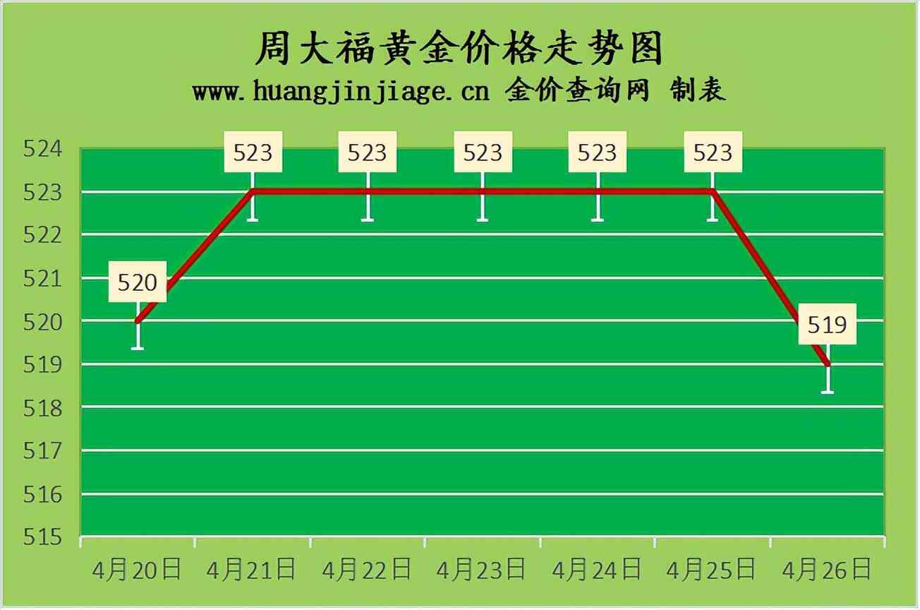 周大福黄金价格519元/克(跌4元),六福黄金价格519元/克(跌4元),周生生黄金价格520元/克(跌3元),金至尊金价519元/克(跌4元),谢瑞麟金价520元/克(跌3元),老凤祥黄金价格519元/克(跌4元),老庙黄金价格519元/克(跌4元),菜百金价515元/克(跌3元),周大生金价519元/克(跌4元),中国黄金价格528元(-),金大福金价514元/克(跌4元),潮宏基金价519元/克(跌4元),周六福黄金价格520元/克(跌4元)。