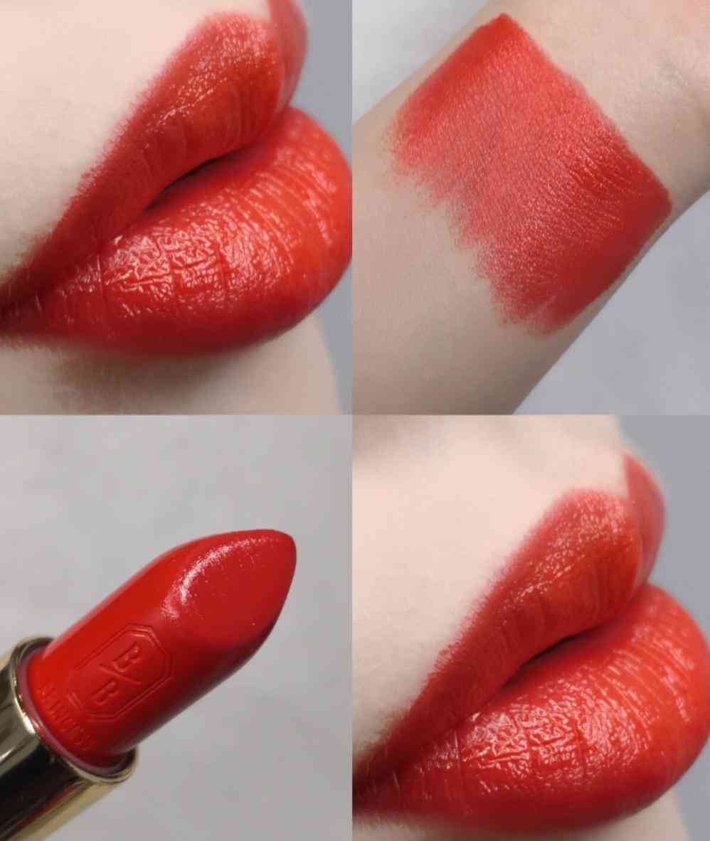 一个偏橘色的枫叶色,可以看到这个颜色特别活泼,对黄皮友好,处于偏滋润型的口红非常适合在秋冬用,配上风衣的话虽然没有红棕色的那种凌冽感,但却多了一些俏皮,是秋天的火红枫叶,让人眼前一亮。