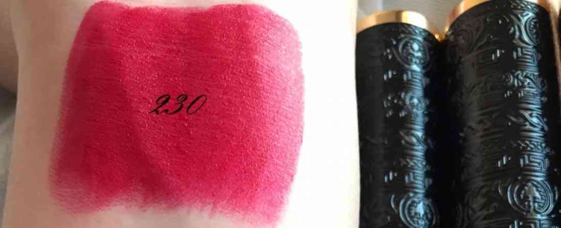 这是一个法国的小众贵妇品牌,高级中带着性感,浓郁的法式风情充斥着这款口红,颜色美飞的同时又超级高级。大家可以看到整个外管都是他们家的经典花纹,质感非常非常好,打开口红盖子有一股甜甜的香 味溢出来,香而不腻。热门色号是#230。