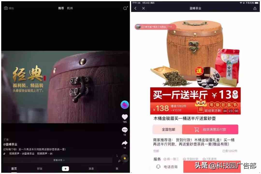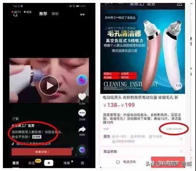 抖音电商“鲁班”,同样是视频展示,但直接跳转的是抖音系统界面下的购买页面完成交易。不需要第三方淘宝,天猫店铺。