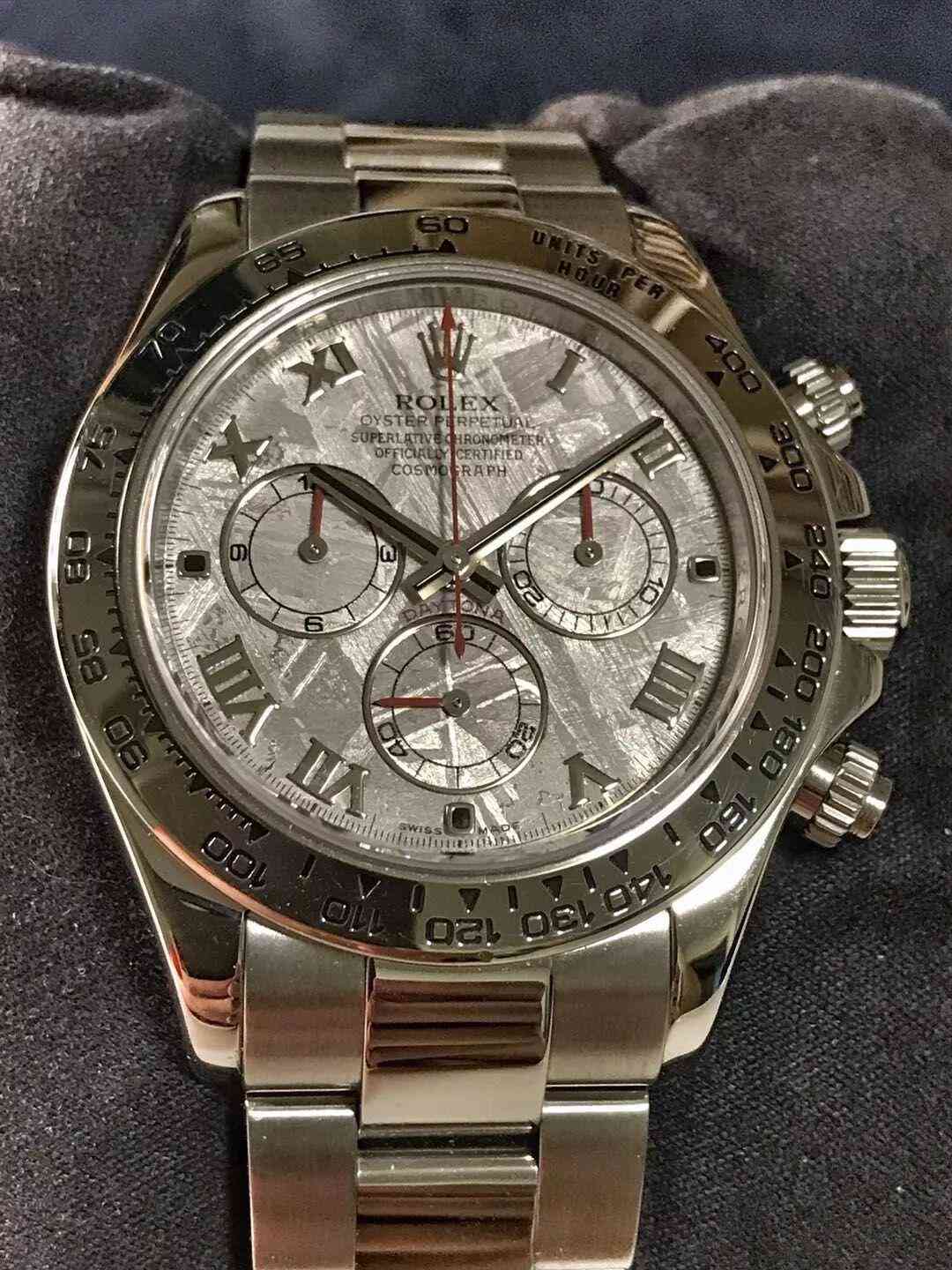 白金款的陨石面,这块应该是2008年的表款,当然也是二手市场所得,到手19.8万。个人觉得对陶瓷圈迪通拿有执念的人不妨挪一挪眼睛,这比起目前14万多的溢价,显然划算得多。