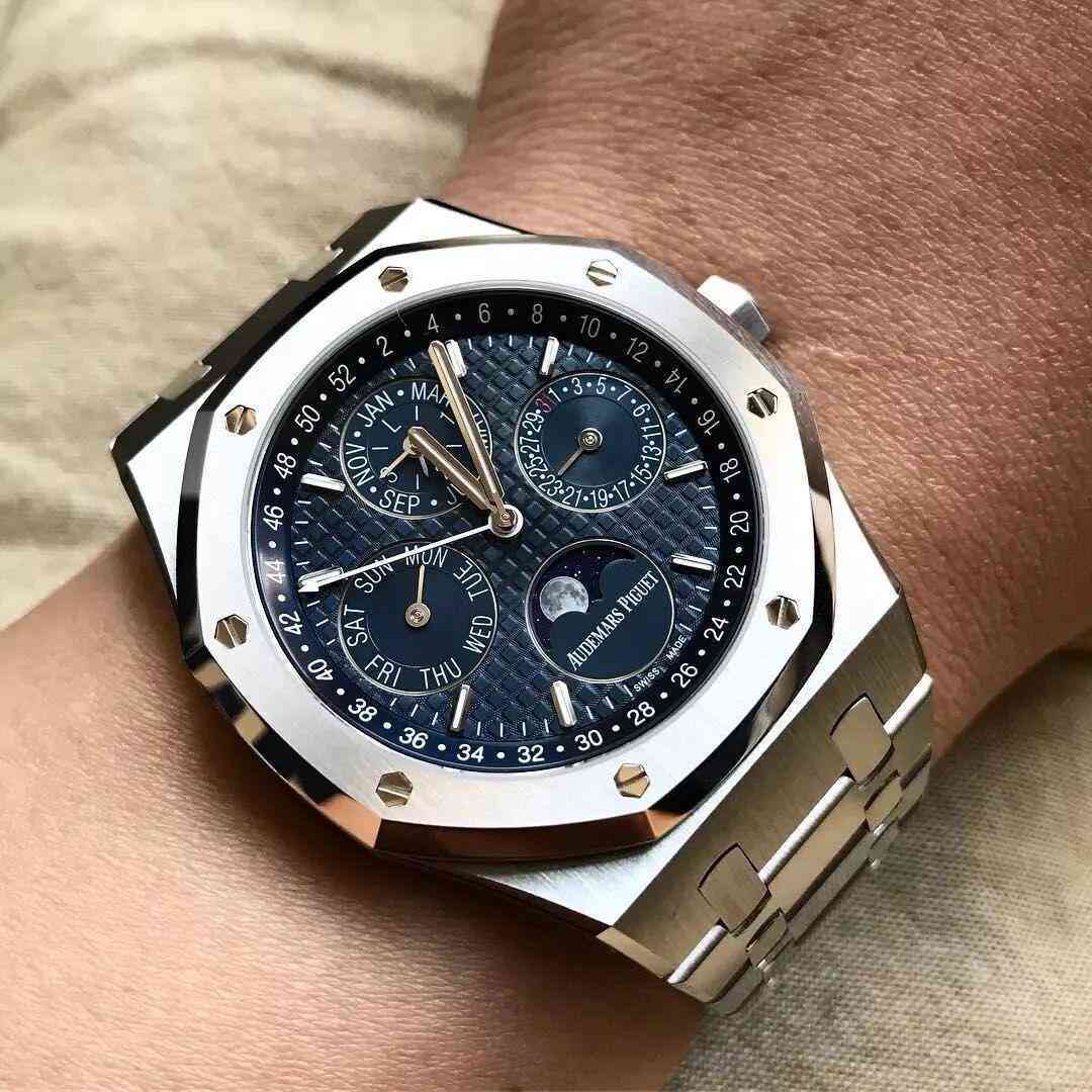 尤其当5711已逼近40万,兔子认为除了不差钱非买不可的,可考虑AP万年历,中国公价45万左右,有小量折扣。这块算是品牌里性价比较高的万年历了,不过据已拥有的朋友告知,怕坏,日常戴得少,家里藏着看。