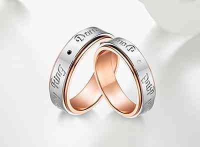 一款可以转动的双层情侣结婚对戒,一层玫瑰金色+一层白18K金,兼顾时尚与经典。可转动的指环,更有始终围绕身边、时来运转之意,非常浪漫。
