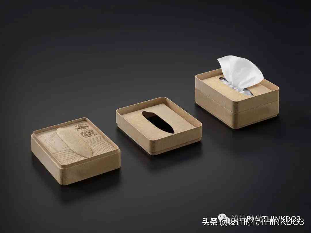 包装盒由稻谷壳模压成型,除了文字信息,盒盖上还压制了米、稻田和麦穗的图案。此外,用完的包装,可以让消费者再次用作纸巾盒,传递资源循环再利用的概念。