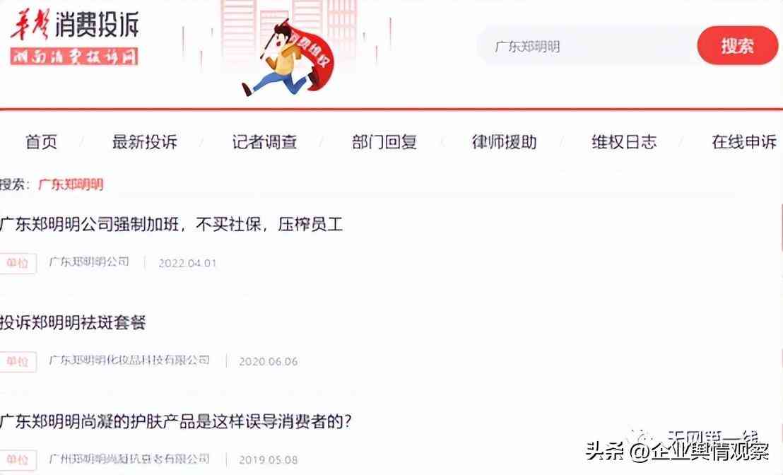 时至今日,仍有3条投诉记录留存,不清楚广东郑明明公司是如何对舆情进行优化的?不过猜想肯定也费了不少心思。