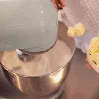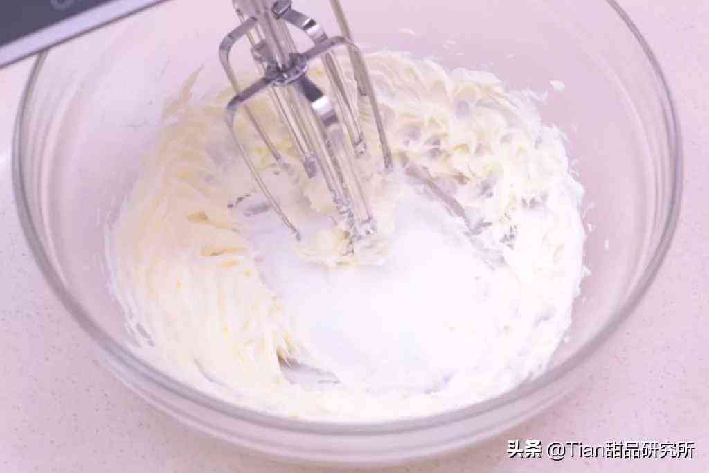 1、黄油软化,加入糖粉 打发至蓬松发白的状态