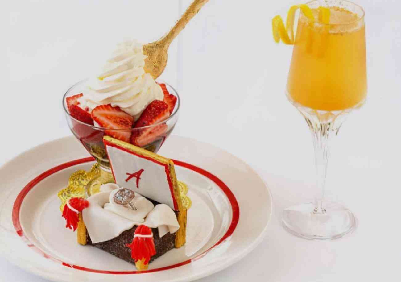 在新奥尔良的法国四分之一的地方发现,这道甜点显然比普通的草莓要多一点。他们浸泡在异国情调的葡萄酒中,带着鲜奶油和薄荷来添加味道,还有一枚4.7克拉的粉色钻戒,属于英国皇家财务顾问欧内斯特·卡塞尔爵士。草莓在水晶洞里,你也会得到一套24,850美元的葡萄酒,由戴着白手套的侍者服务,还有一场爵士音乐会来刺激你的食欲。不过你不能吃钻石戒指。