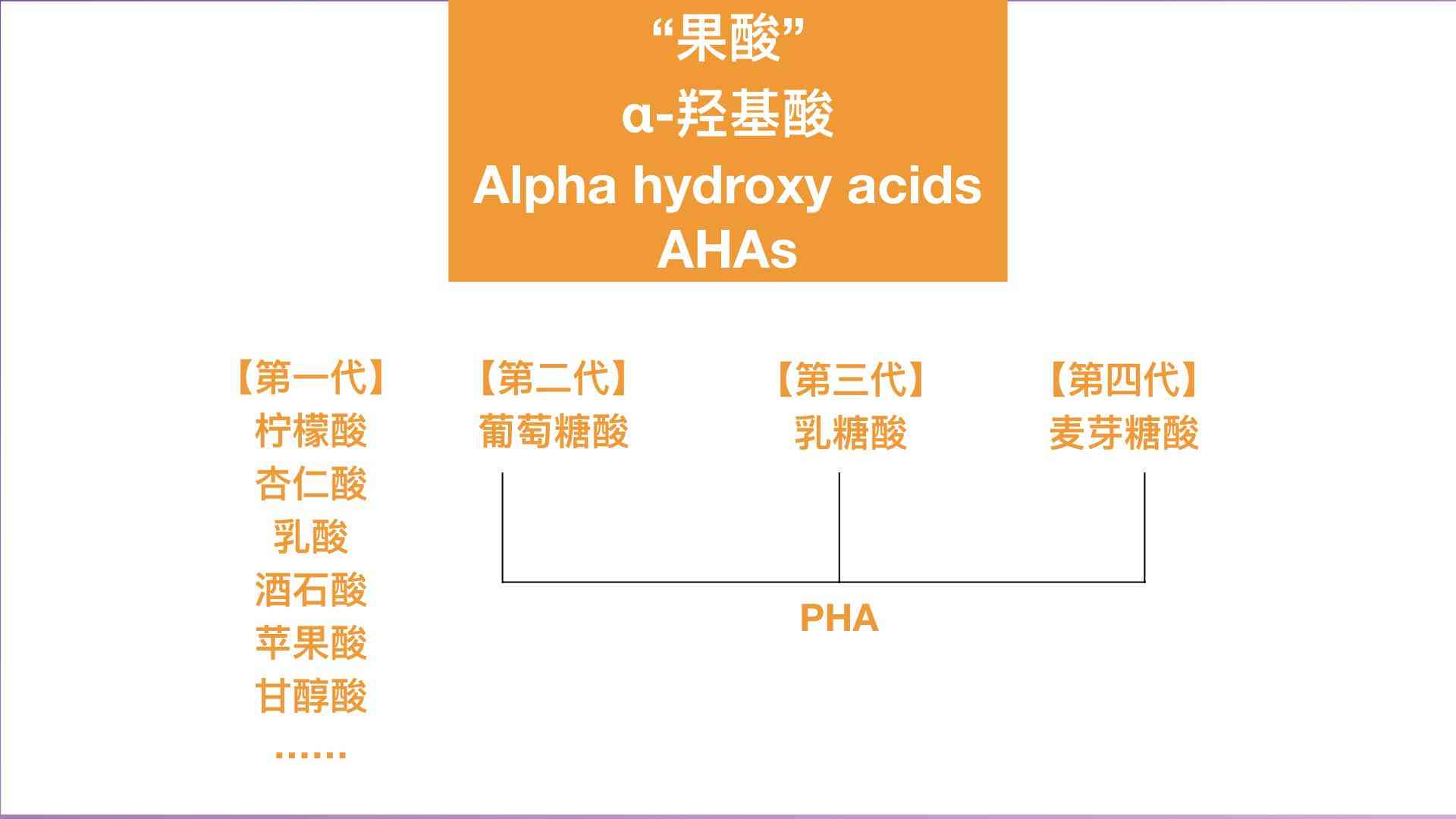 事实上,「果酸」是一个大类,包括几十种「α-羟基酸」,而且可以分成四代。