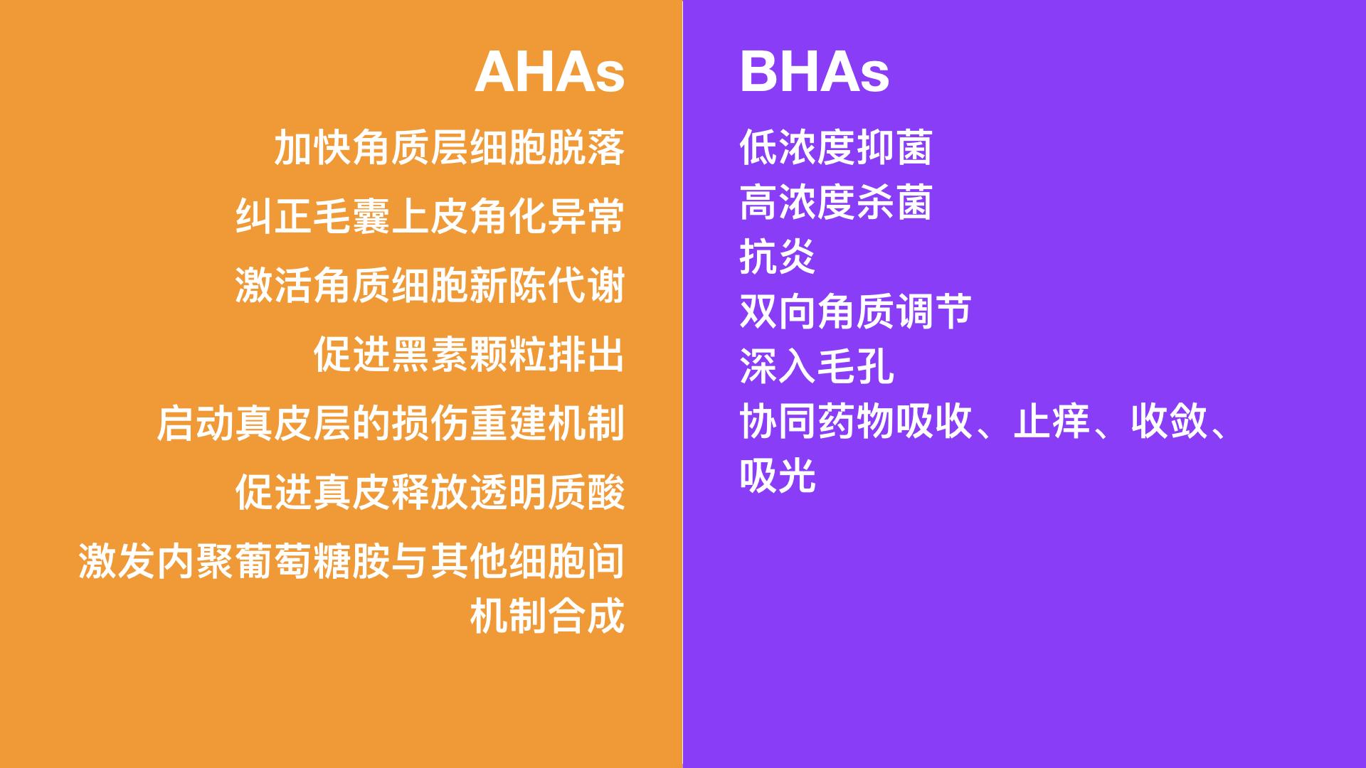 「AHA」整体的功效虽然很广泛,但单独到每一款酸,都有各自特定的功效,并没有十全大补的品种。