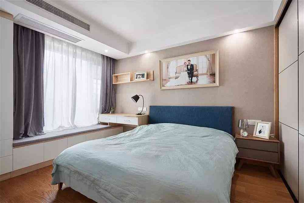 还有一些不能砸的飘窗,主要设计要点就是在窗帘、台面和坐垫的搭配上,选择和卧室风格相搭配的软装,让飘窗变得更美。
