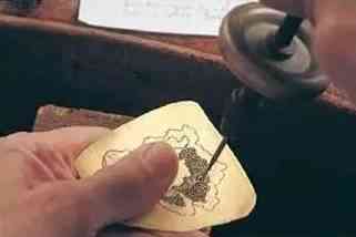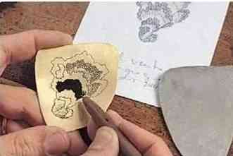 凭借一个袖珍手工钻孔机,在描绘出的每个圆的中心钻出一个小孔,这个工序完完全全手工完成,需要极端的耐心和稳定性,哪怕一个微小的失误也会导致整个原材料的报废。