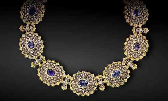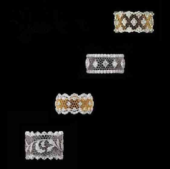 亦舒曾说:“白金夹黄金,小巧的宝石,异常精致的图案,纤细多姿得犹如神话中仙女佩戴的饰物,引人入胜。因有种迷茫的美丽,现实生活中罕见,镶作鬼斧神工。”师太这里夸的其实就是意大利珠宝品牌布契拉提(Buccellati)独有一种手工镂空技艺:珠罗纱(Tulle)工艺。它也被称为织纹雕金或蜂巢(Honeycomb)工艺,其灵感来自文艺复兴时期的蕾丝面料。