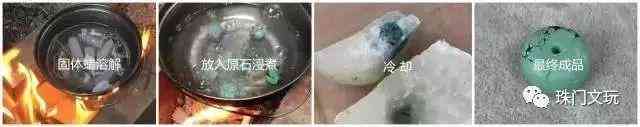 过蜡就是煮蜡,把已经抛过光的松石成品放进融化的蜡水中浸泡,持续加温,使其完全吸收附和,以此来达到加深松石颜色,增加成品光泽感的效果。