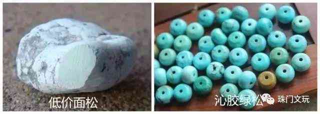 白松虽然不是绿松石范畴,但其价在市场上也有上升,于是出来一种加工方法—泥土烧制的东西,把白松的价钱马上打压下去。这就是比塑料贵点,比白松便宜点的—-假白松,泥土烧制加色。