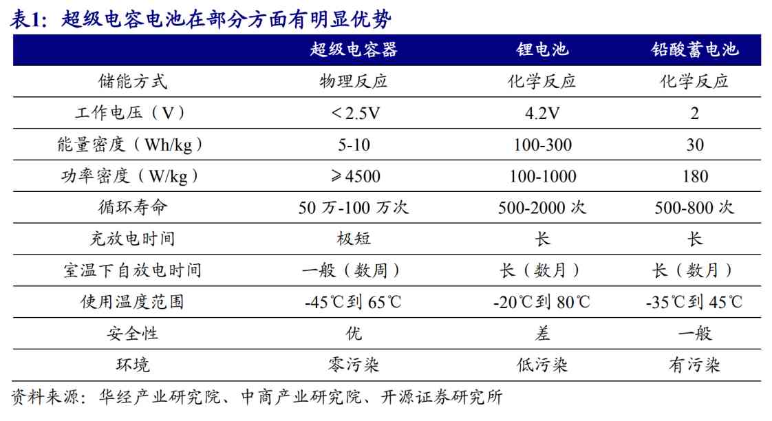 图:超级电容器基于物理反应,而常见的锂电池和铅酸电池基于化学反应