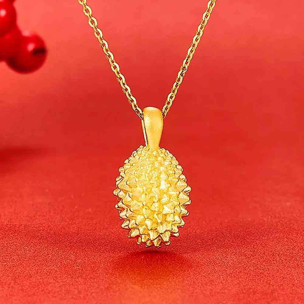 水果类珠宝很多,榴莲和珠宝关联可能还是次,能火的原因一个是榴莲的谐音“留恋”,寓意:留你一生,恋你一世,流连忘返,另外可能是榴莲的外表带有尖刺,反而激发了年轻人追求另类的需求。