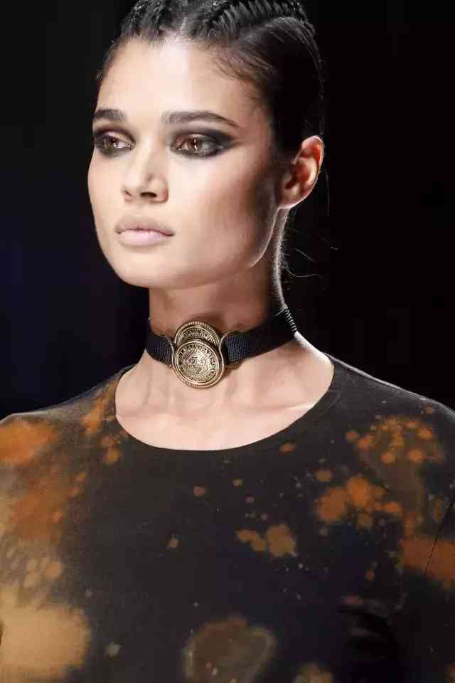 ▲Balmain 给黑色Choker 加上了复古图腾,有种异域美。
