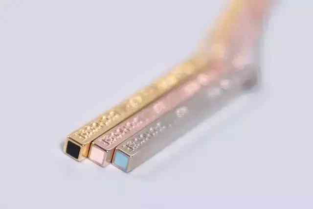 这款项链每一款还在方柱形挂坠的底部,加入了不同颜色的珐琅材质。