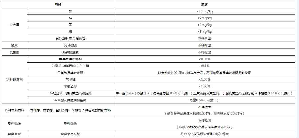 1、安全性:对化妆品进行禁用成分、限用成分、致敏成分、刺激成分、重金属、环境安全性和备案检查等七个维度进行检测判定。检测合格则为安全性符合。