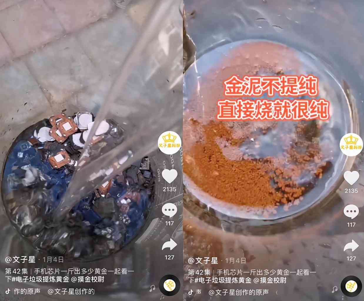电子元器件能炼出黄金?啥原理。/@名郑言顺 视频截图