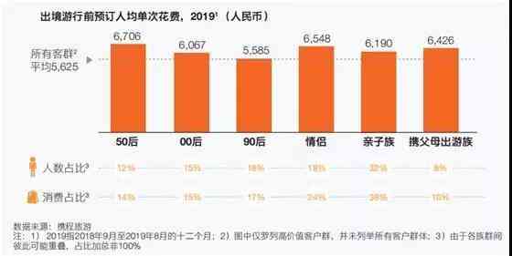 亲子游的花费排名第三,呈现出两位数的增长趋势,人均单次产品消费比非亲子族群高出了18%,达到了6190元。