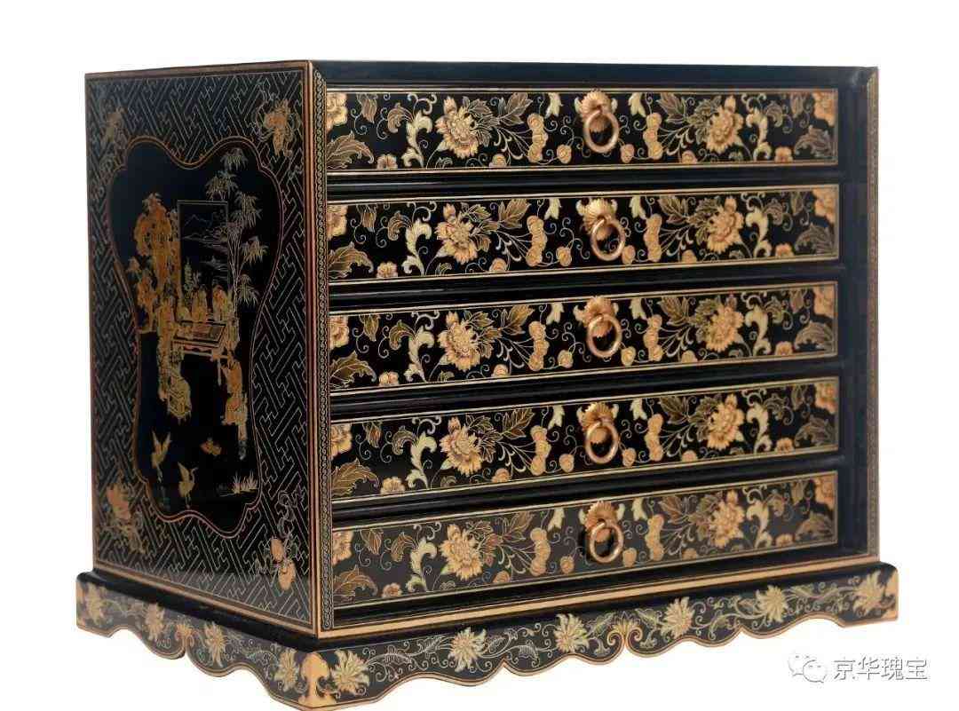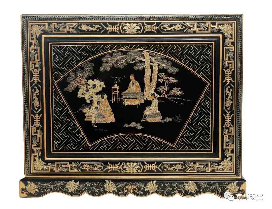 作品采用传统的大漆描金工艺,设计巧妙实用,画面生动。用笔线条流畅,构图合理,画面古朴,人物表情生动,整体呈现出高贵典雅的风格。实用性,观赏性,与艺术性兼得。