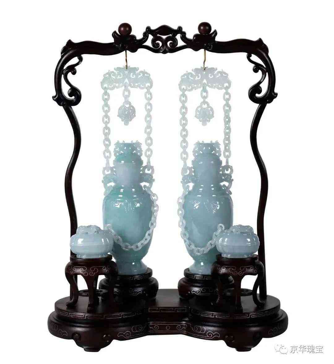 作品以高档翡翠为创作载体,施以玉雕中难度极高的“链子活”治玉技艺,双瓶之间各自由数节链环相连。又采用圆雕、镂空雕手法,琢治龙凤神兽,彰显中华悠久文明历史,瓶体环链相接,垂设精致翠盒组成大型翡翠摆件。寓意祖国和人民心连心,祝福新时代“盛世永固、国泰民安”。