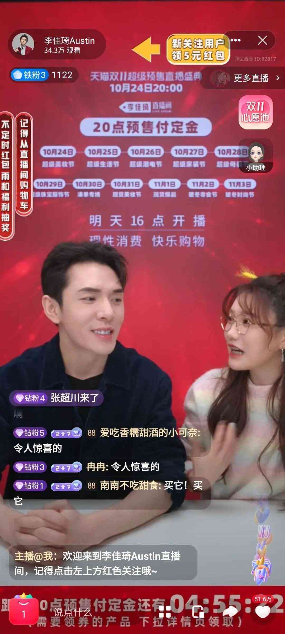 10月24日15点一过,刚刚开播的李佳琦安慰着网友对买不到东西的担忧。