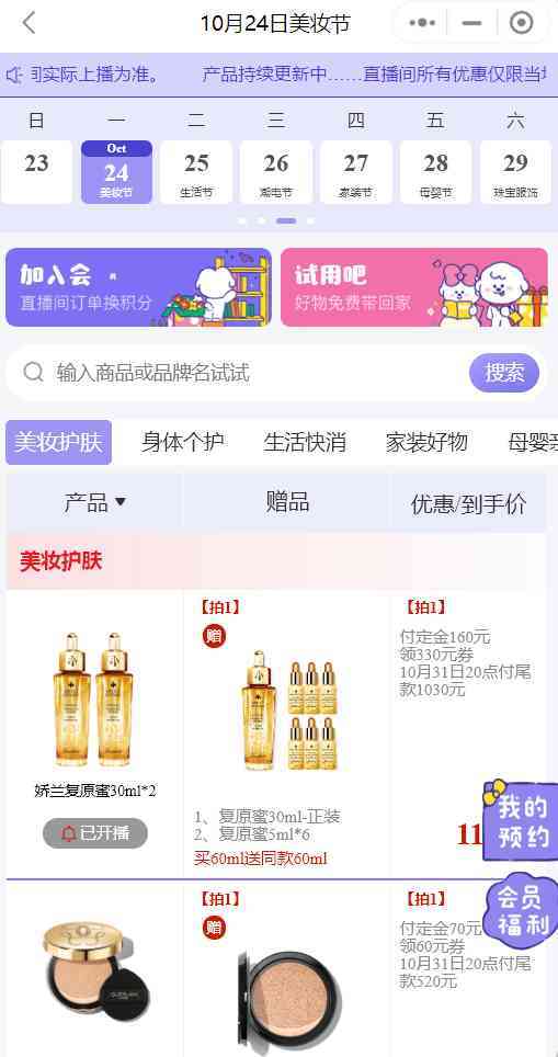 比如,取代去年广为流传的“复习资料”商品表格的,是使用起来更方便的“所有女生”小程序,里面分门别类地整理了直播的所有商品,并支持一键搜索,还可以清晰地看到李佳琦大促期间的直播节奏,实现一键预约。