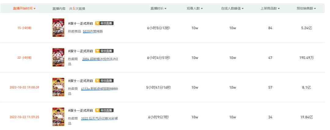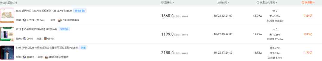 数据显示,10月24日预售当晚,李佳琦直播间上架了291个商品链接。知情人士透露,整场直播最终预估销售额超过200亿元,观看人次达4.5亿,几乎将去年的成绩翻倍,刷新了单场直播GMV纪录。