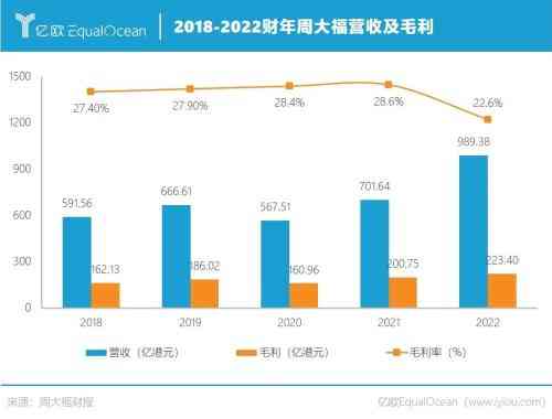 2022财年,周大福实现总营收989.38亿港元,相比2021财年的701.64亿港元增长41.01%。此增速高于行业平均值——国家统计局数据显示,2021年,我国金银珠宝类零售总额达到3041亿元,同比增长29.8%。