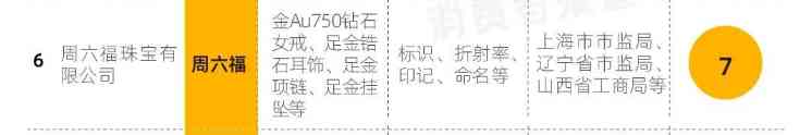 不过,据《消费者报道》,2019年10月和12月,辽宁省市场监督管理局和上海市市场监督管理局对周六福产品抽检时,又发现了2批次的产品标识项目不达标。