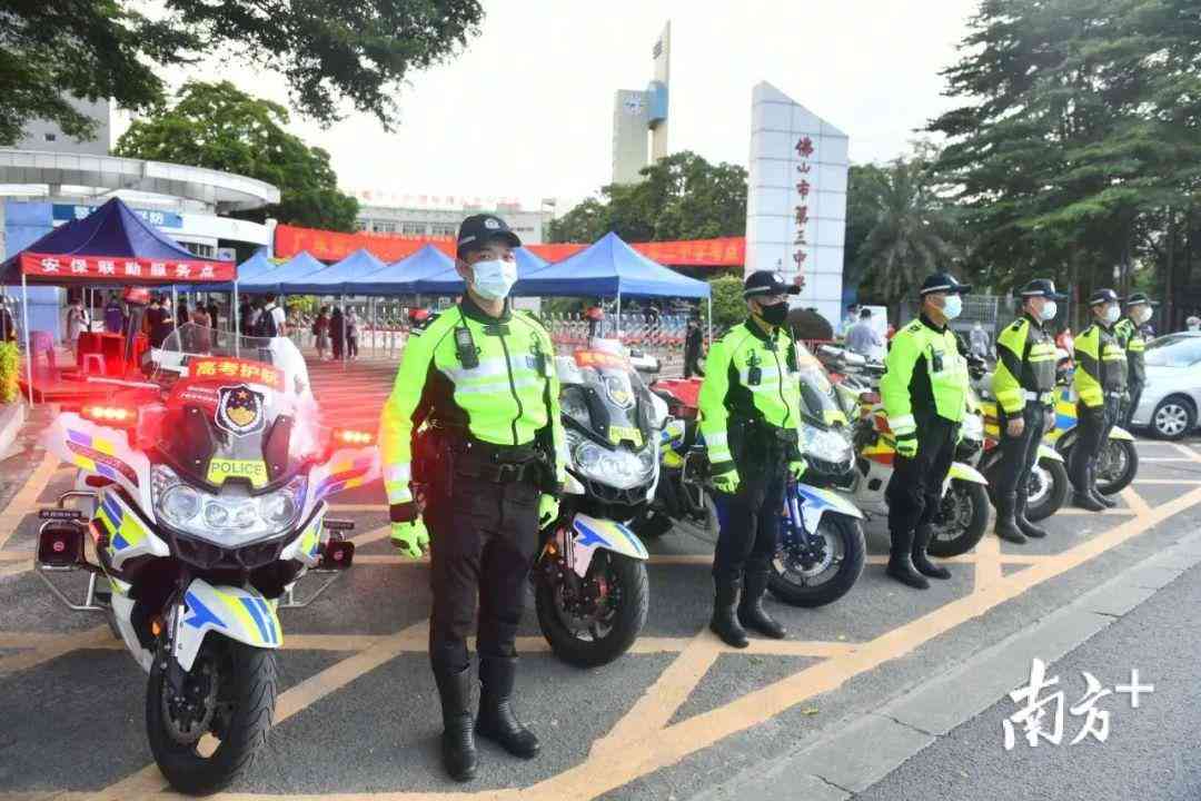 广东佛山三中考点,帅气的铁骑护航高考(摄影:戴嘉信 )