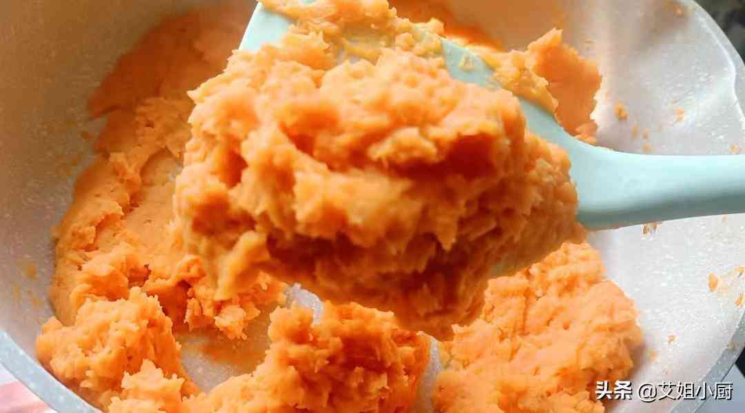 1、红薯泥:约350克红薯(去皮),牛奶20克,炼乳20克、黄油10克