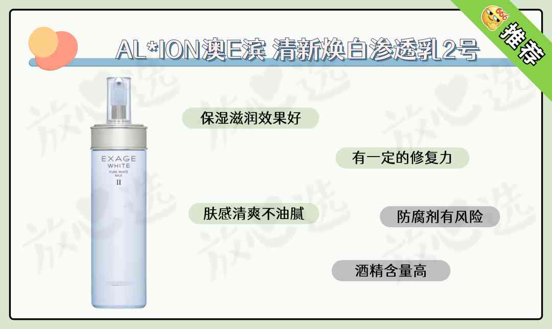 主打焕白的渗透乳,击退肌肤黑色素沉淀,让皮肤散发自然光泽感。2号适合混合至中性肌肤。