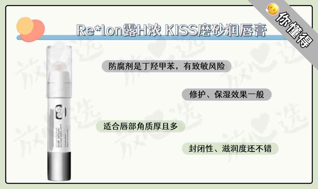 综合来看,其实这款唇膏的配方平平,没有特别强的修护和保湿效果。至于它的磨砂作用,比较适合唇部角质厚且多的人,角质薄的姐妹就不要凑热闹了。