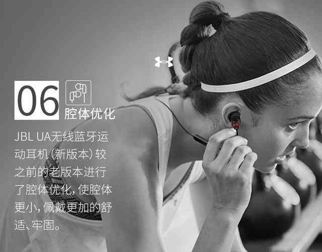 JBL UA无线蓝牙运动耳机堪称为运动而生,它采用防脱落的设计,佩戴舒适且安全,不用担心在运动过程中会掉下来,尽可自在轻松的享受音乐、慢跑以及沿路的风景。为应对运动时出汗的问题,JBL UA采用防汗设计,选用了防汗且坚固的材料,并通过了专业运动员的测试体验。此外,JBL UA专门对内部腔体进行了优化,长久佩戴依旧舒适。