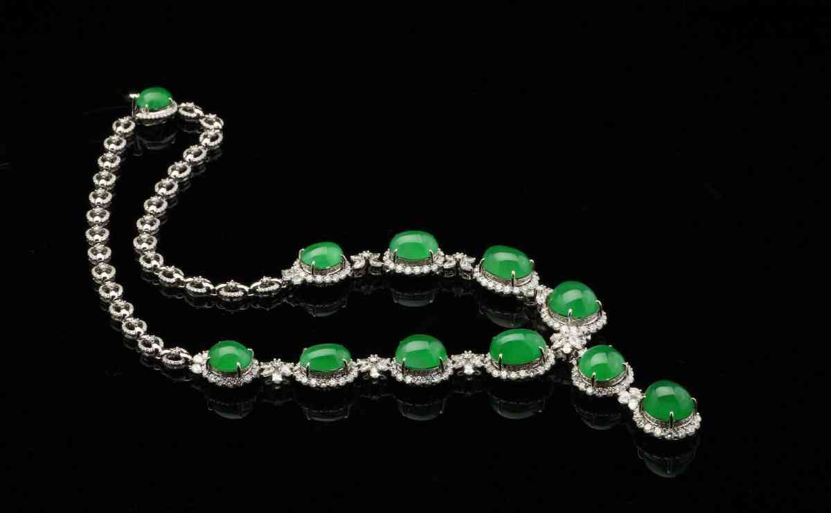 翡翠项链可不比其他首饰,绝对是个大件,拆开来能做好几个戒指、胸针,价值肯定不菲!翡翠项链所含有的精、气、神可不是其他玉石彩宝可以媲美的。它装饰着佩戴者的脖子,象征着高贵、典雅和尊崇。
