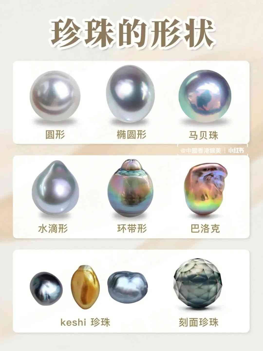 珍珠按照形状可以分为3种:圆珠,相称珠,异形珠。而珍珠的形状一般为圆形,其中越接近正圆的珍珠质量越为上乘。