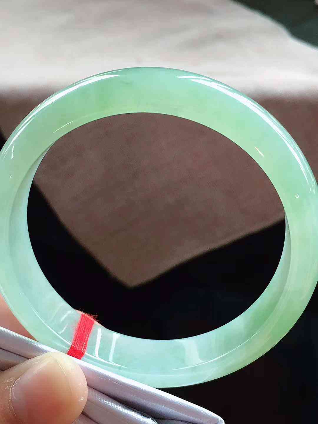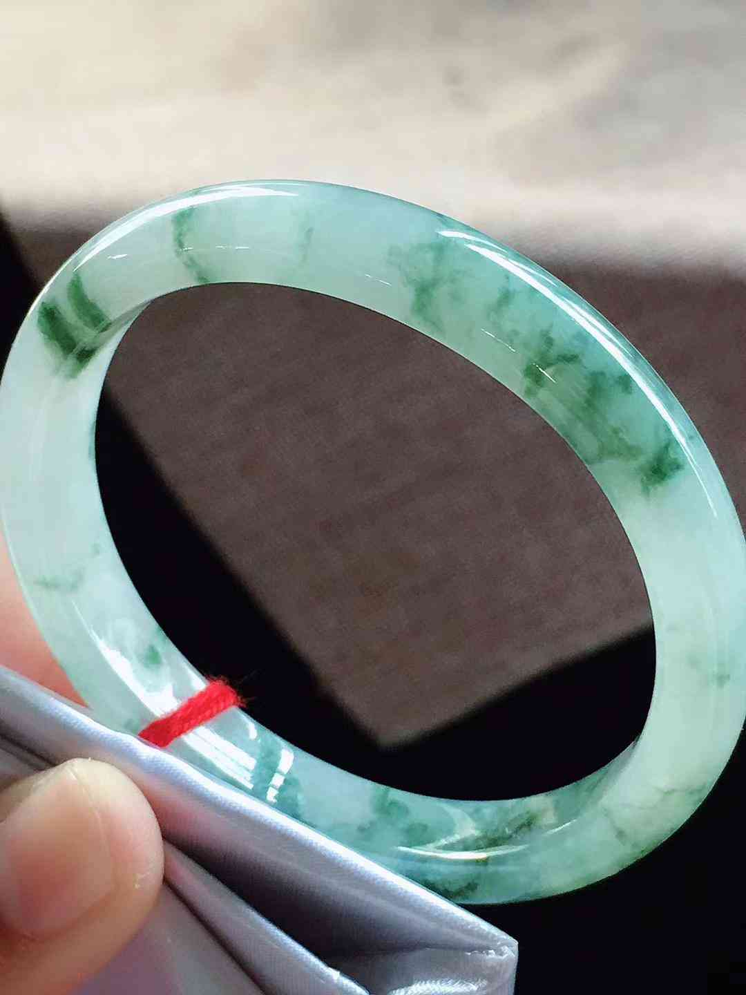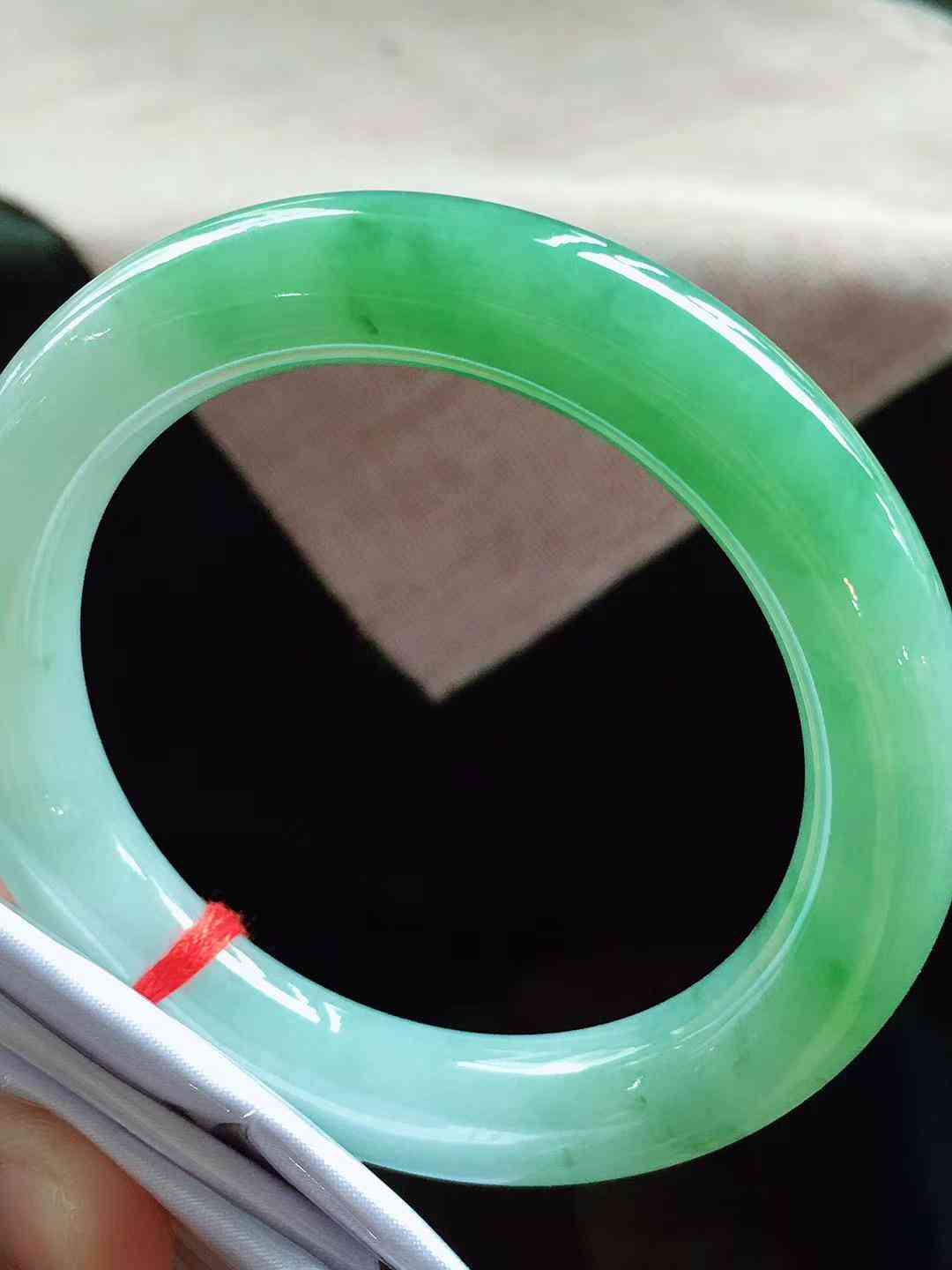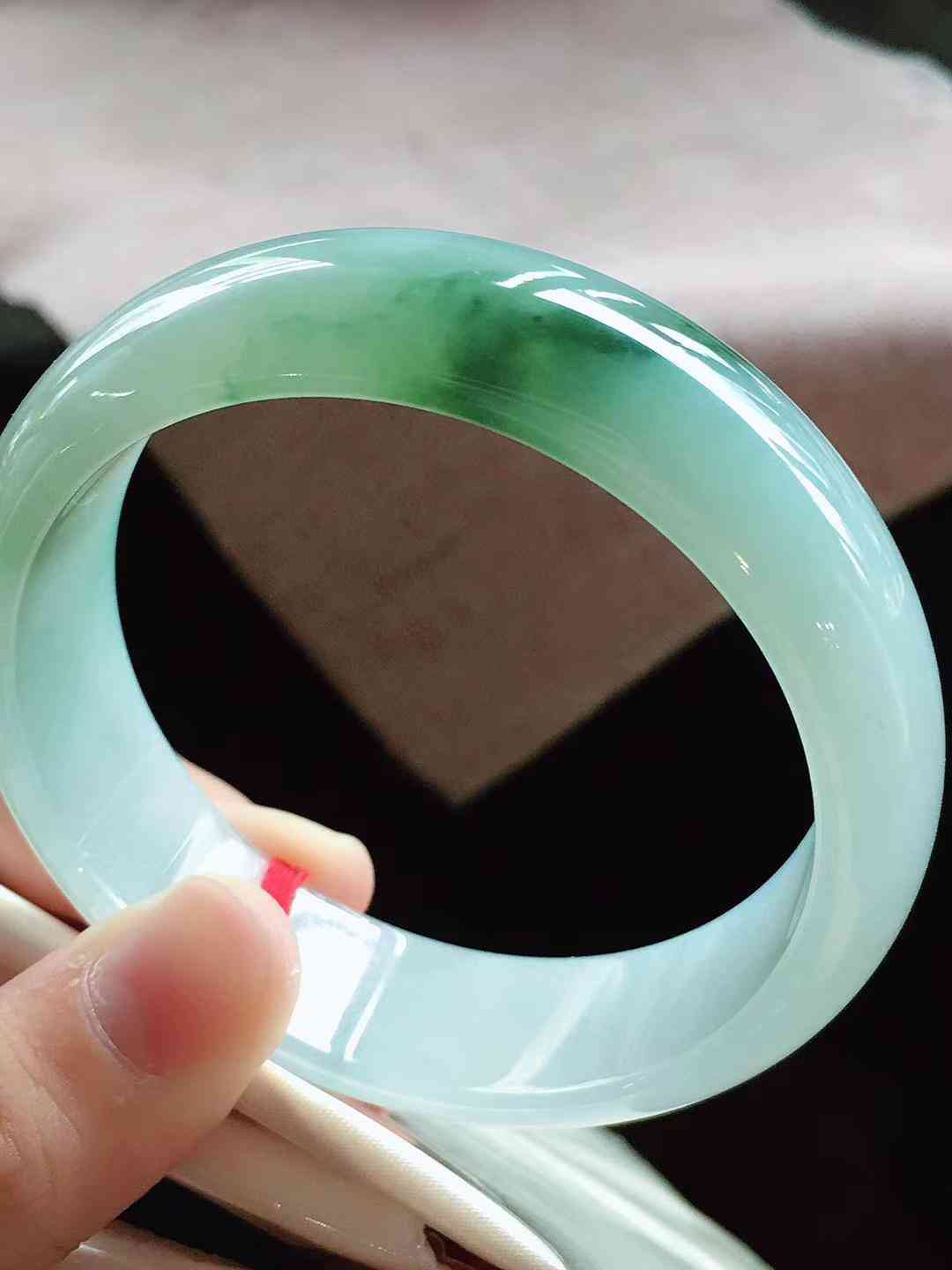 冰飘绿正圈翡翠手镯,圈口57.6,种老,水润光感,细脚清爽,时尚