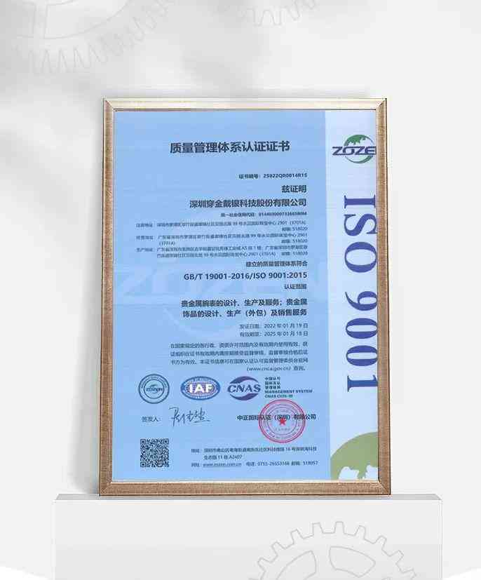 “穿金戴银”始终坚持“质量,信誉至上”宗旨,设立品质中心,以ISO9001质量管理体系为执行标准,从配件到成表,以100多项检验内容确保产品品质,将提升质量标准作为持续推动贵金属腕表行业高质量发展的强劲动力。