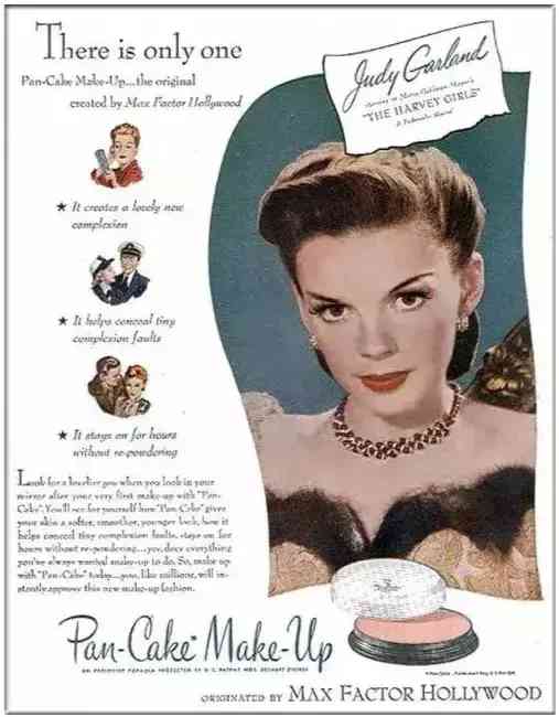 个出现在商业广告里的粉底产品是MAX FACTOR的Pan-Cake(铁盘粉饼),名字生动地还原了造型。