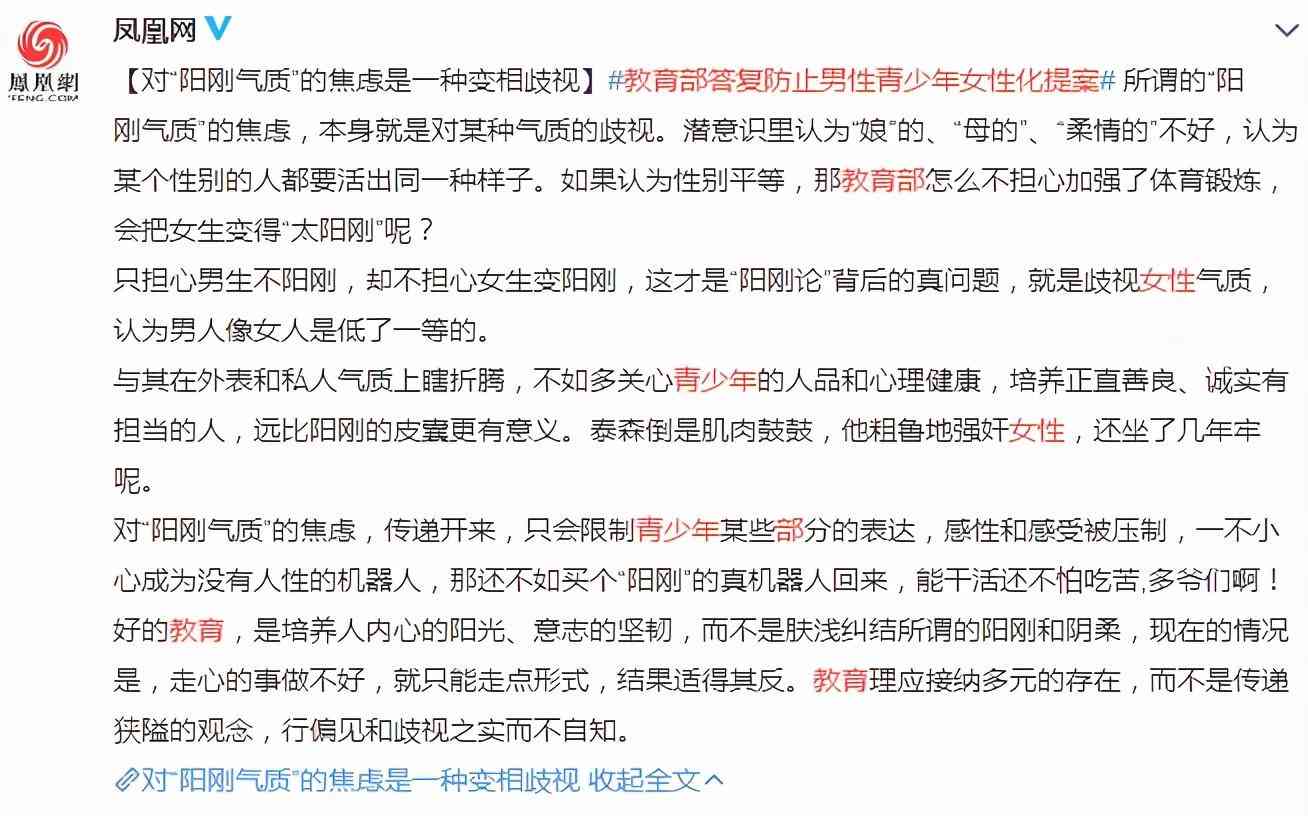 凤凰网更是表示:对“阳刚气质”的焦虑是一种变相歧视!