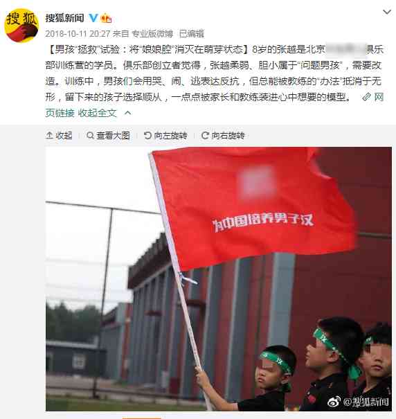 2018年,就有媒体报道过,北京还存在着这样标榜“拯救男孩”和“将‘娘娘腔’消灭在萌芽状态”的俱乐部。在这里,很多男孩子爱哭、怕累、柔弱、胆小的“毛病”,会在所谓封闭式的军事训练中,被教练的各种“办法”抵消于无形,留下来的孩子选择顺从,一点点被家长和教练装进心中想要的模型。