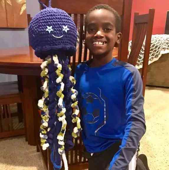 在别的小男孩玩机器人、踢足球的时候,Jonah却被钩针吸引住了,他完全沉迷在编织的世界里。