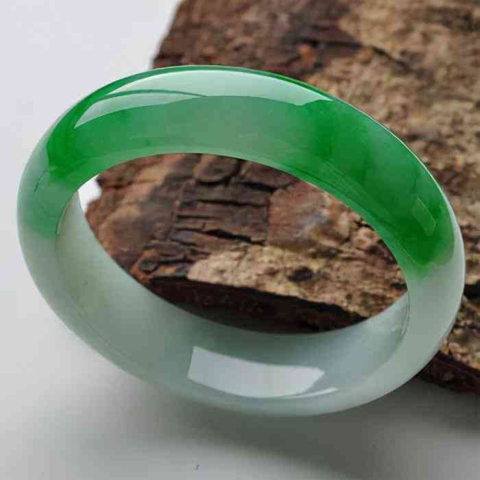 3,冰糯种/糯种翡翠:冰糯种一般是指透明度好、水头好的糯化种,可达到冰种水平的一种翡翠品种,质地介于透明与不透明,就像煮熟的糯米。主要特点就是透明度较冰种略低,给人的感觉就像是浑浊的糯米汤一样,属半透明范畴。糯种又可详细分为糯冰种和糯米种。糯冰种指比冰种略浑浊的种分,就像杂质略多的冰一样,也有人将其归类为冰种。