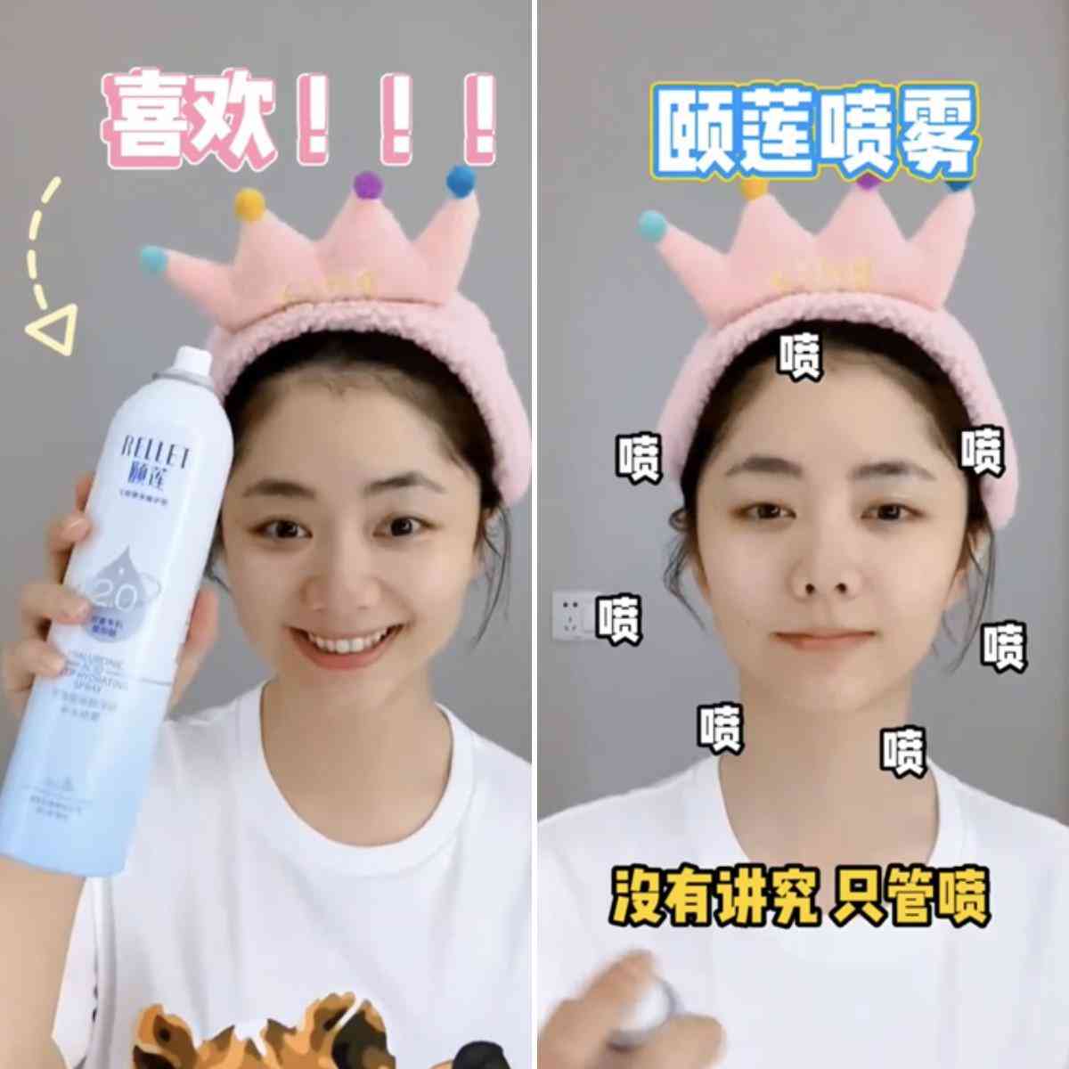 妆前用补水喷雾湿敷一下,有利于妆容更加服帖,妆后用补水喷雾定妆一下还可以带走浮粉,让妆容更自然。